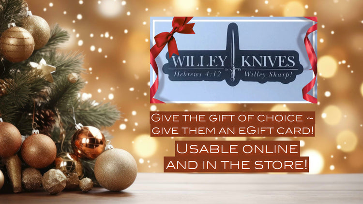 Willey Knives, 14210 Sugar Hill Road, Greenwood, DE 19950.